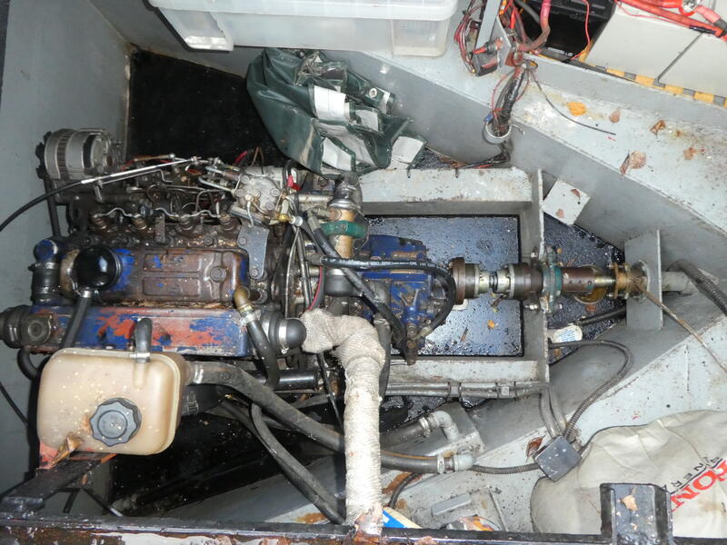 BMC four cylinder 1800cc 40hp diesel with Prm gearbox driving through an aquadrive coupling and single alternator.