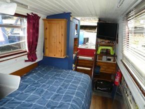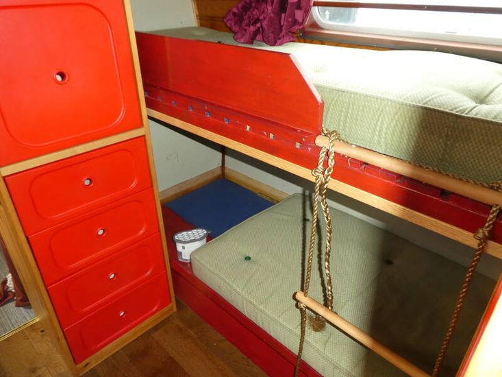This boat could be a very comfortable cruising or residential boat for a family, having the rare features of a fixed double bedroom and separate bunk room.