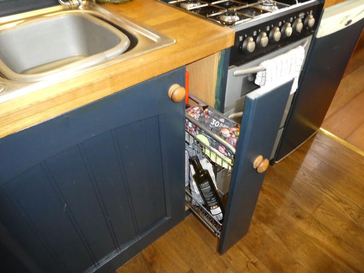 The galley has a modern feel with painted units.