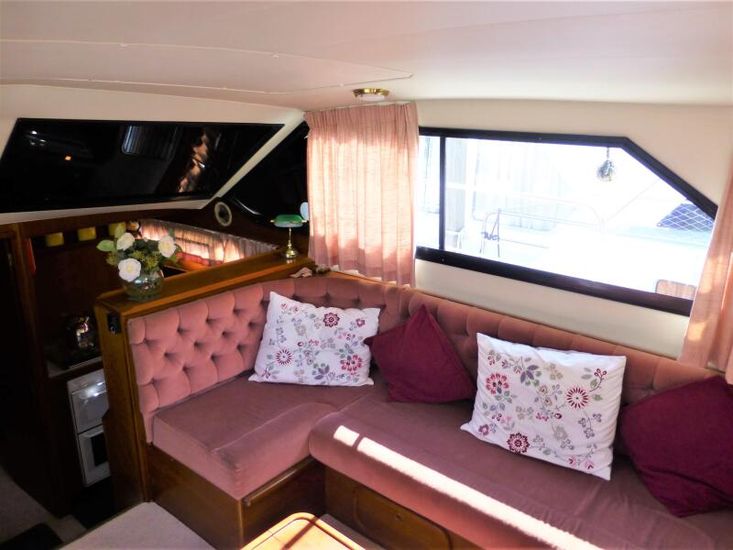 Moving forward, the saloon has a large U-shaped sofa to starboard which converts to form a double berth.Fitted storage cupboards run along the port side.