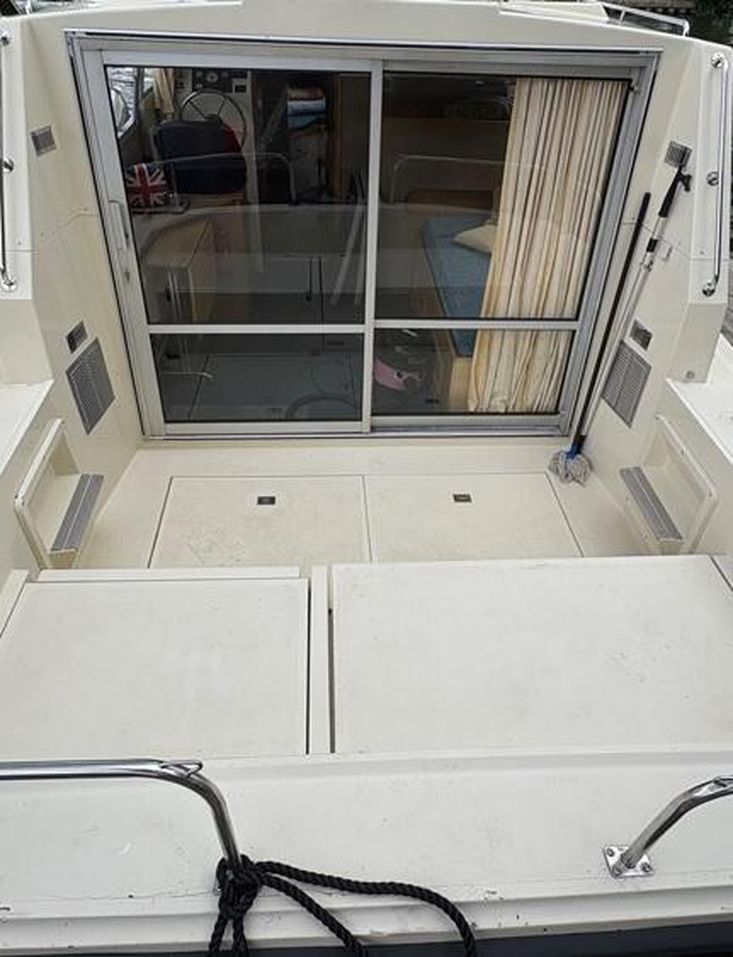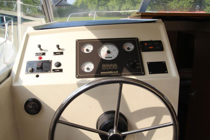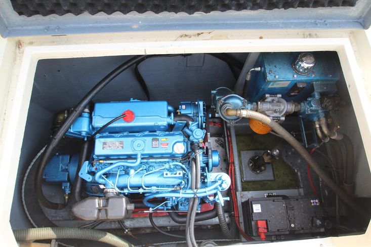 Aquafibre 37 - Freshly Antifouled February 2026 - Built in 1994 and fitted with a Nanni N4-43 engine, which was Brand New in 2022 with a 120amp alternator. She has a hydraulic drive and morse cable steering. Sleeps 6 people in 2 cabins and the saloon. The front cabin has 2 singles which can be converted into a large double using the matching insert, a wardrobe, 2 draws and a storage cupboard. The master cabin has a fixed double bed with en-suite facilities, 2 draws and a wardrobe. There are 2 electric flush toilets and showers. The heating system is a 12v Webasto Airtop Evo 39 with 3 outlets. There is 1 starter battery and a separate bank of 3 batteries for the domestics, with a split charging system with re-settable fuses. The Galley comes with a 12v 100ltr Isotherm fridge, Thetford Midi prima oven and grill (New in 2023). There is a Glomex aerial system installed for viewing tv and which can also be connected to the CD radio. The 240v power is supplied via a Whisper Power 2kw inverter with sockets to the saloon, galley and 2 cabins. The hull is still in original gel coat and has never been painted. She has been lifted out of the water every year since new for antifouling and regular inspections and was last lifted in December 2025. The hull has been cut back and polished, and a new cutlass bearing fitted.