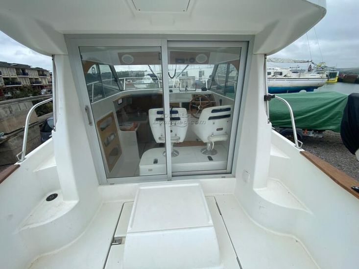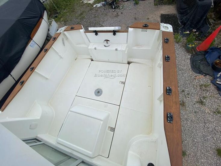 With a large cockpit, practical fore cabin with saloon table, heads, sink and cartridge single burner cooker it looks an excellent day boat for fishing.