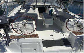 Flag: Greek. Type of Sails: Fully battened mainsail 2020, 2 roller genoa 2020. Berths: 12. Cabins: 6: 4 double & 1 bunk & 1 for skipper.Heads: 4: 3 & 1 in skipper cabin. Engine (hp)/ Hours: Yanmar 110hp, 4200 hours (September 2024). Instruments: Raymarine.