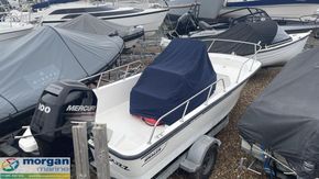 2013 Boston Whaler 170 Montauk has just arrived at Morgan Marine, a superb example powered by a Mercury 100hp outboard engine with only around 255 hours of use and an excellent service history. ‘Buzz’ is loaded with premium extras, including a Garmin chartplotter and VHF radio, a large self-draining locker, and a full fishing package with rod holders and a cool box complete with cushion and backrest. Comfort and convenience continue with a bow cushion set, navigation lights, swim platform with stainless steel ladder and handrail, reversible pilot seat, and covers for both the pilot seat and console. Renowned for their exceptional design, build quality, and refinement, Boston Whalers deliver performance and reliability that set them apart. This boat also comes with its own two-wheel trailer which is ideal for Morgan Marine’s park and ride service. A viewing is highly recommended to appreciate the outstanding condition and features of this Boston Whaler 170 Montauk.