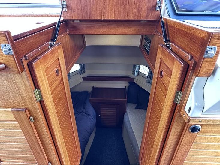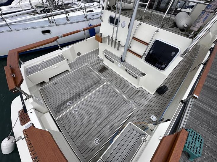 This boat has enjoyed a lifetime of professional care and attention, with one of the best original equipment packages plus a host of thoughtful upgrades by her owners. From teak decking throughout to Eberspacher diesel heating, and a Garmin navigation suite, she is equipped for serious cruising in comfort and style.