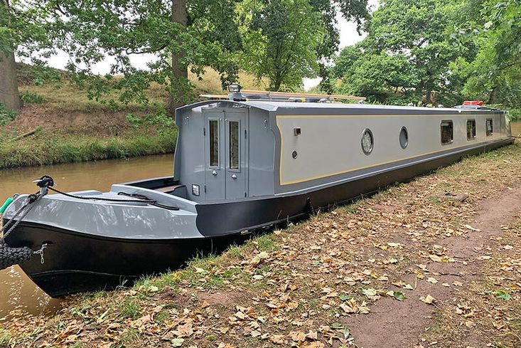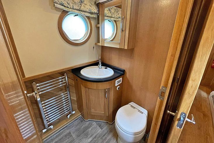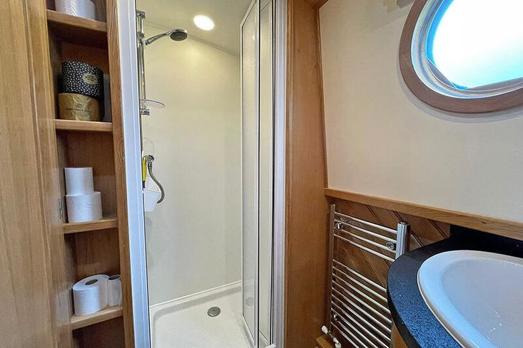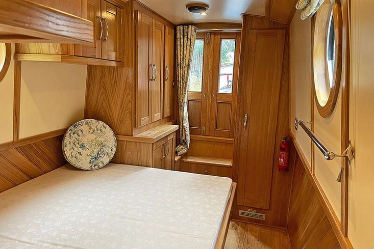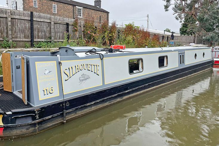 Silhouette was built by Elton Moss Boatbuilders in 2022 and offers a front bedroomed layout with wooden floors throughout.