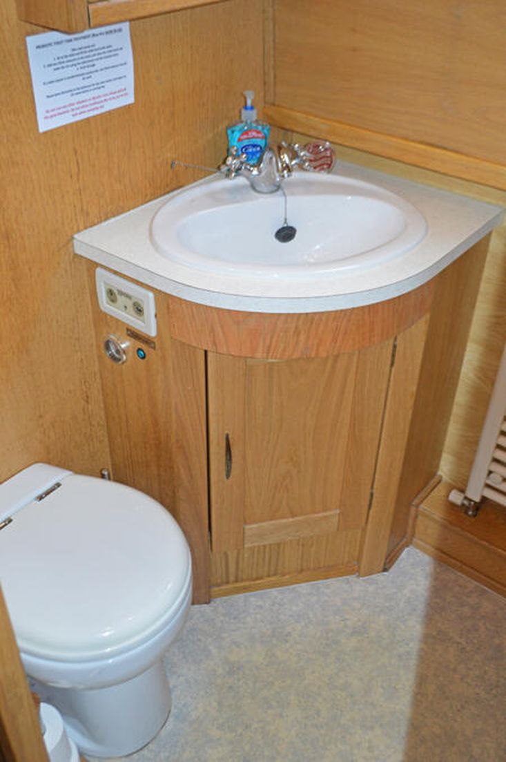 Bathroom: The cabin bathroom offers a full sized shower and a pump out toilet.