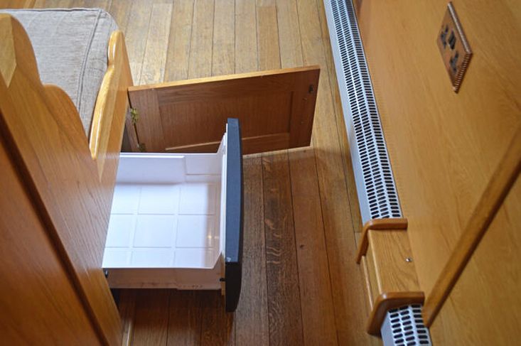 Dinette: The dining area offers an L shaped dinette, which converts to double berth, with freestanding table. There is a chiller drawer under the seating.