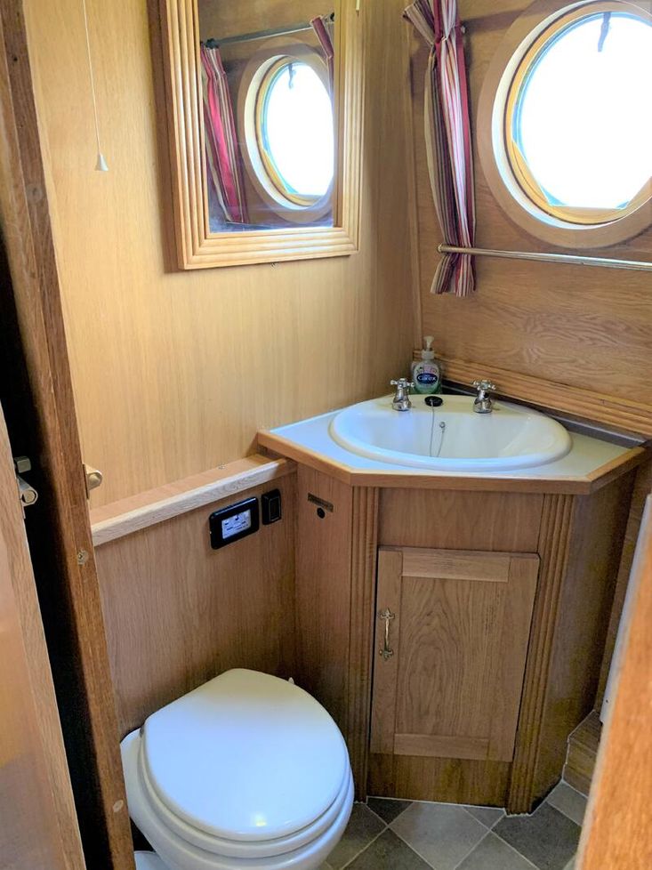 Bathroom: The cabin bathroom offers a full sized shower and a pump out toilet.