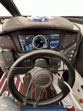 This luxurious 2022 Centurion Fi23 is an awesome, compact, performance-oriented, premier surf boat designed for serious sports performance and fun. With its wide pickle-fork bow and sleek and aggressive lines, this boat clearly means business.