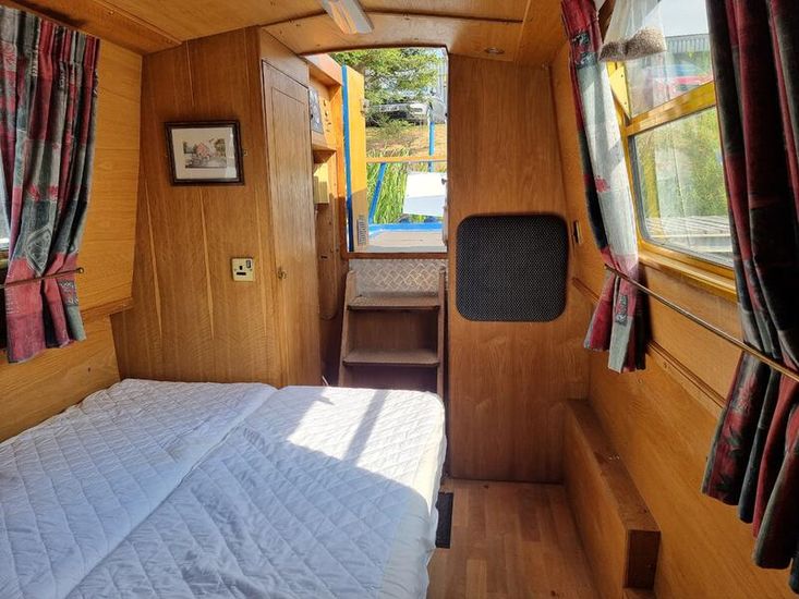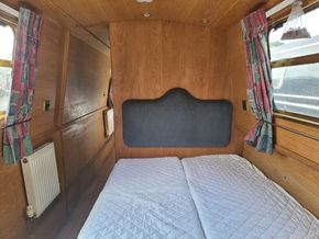 From the stern there 2 x lockers port side giving access to calorifier and starboard giving access to the electrics inverter etc. Then the first bedroom which comprises of a fixed double with storage under and a central heating radiator,