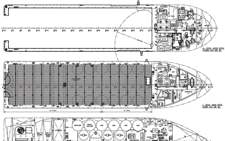 Platform Supply Vessel. With the support of economical operations with Diesel Electric Main Power Plant.