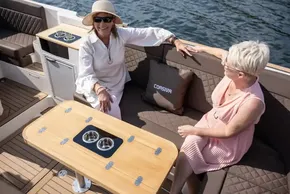 The Corsiva 800 is the latest edition to the Corsiva range and is also the largest. At a length of 7.5 meters, the 800 boasts a large cockpit space while offering a number of new optional extras such as a deck shower, 42 litre fridge, and marine toilet.