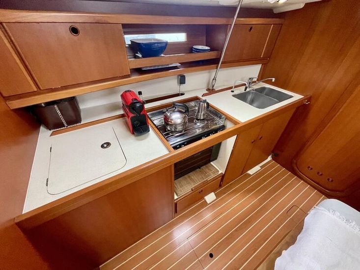 Below deck, Sagittarian boasts Dufour’s signature craftsmanship with a bright, airy saloon, generous galley, and comfortable cabins that make her perfectly suited for family cruising or entertaining friends. Her elegant lines and quality build reflect Dufour’s reputation for blending French style with seaworthy design.