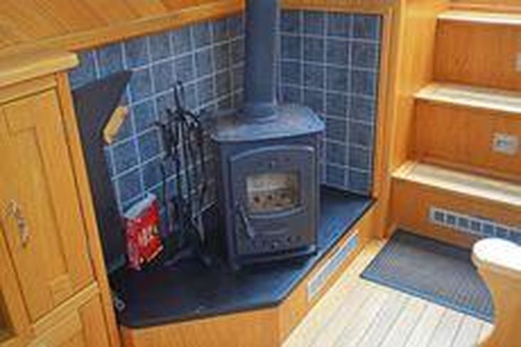 Saloon: The saloon has comfortable built in seating that converts to beds and a wood burning stove. There is built in flat screen TV, a DVD player and Radio / CD player.