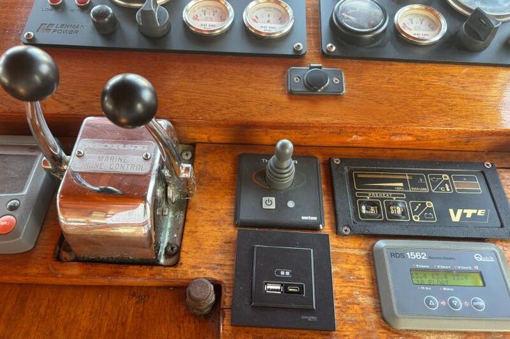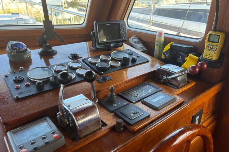 The throttle controls are not mounted. All the equipment required for the dual helm is on board, but we have never made the fine adjustments needed to fully operationalise it.