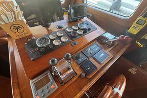 On the flybridge, there is a secondary helm station with the navigation instruments installed.
