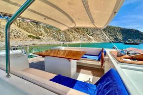 El barco se sometió a una importante remodelación en 2015. El flybridge, las cubiertas de teca, los pasamanos de acero inoxidable, la cocina y todo el barniz del salón se renovaron por completo.