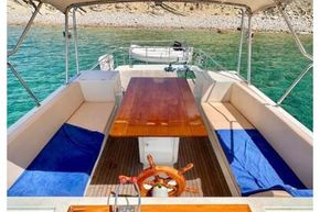 This boat is made of reinforced polyester, with grained sides and the hull above the waterline. The vessel's hull below the waterline was treated with antifouling. Vessel steering is possible from both the lower and upper rudder spaces; the cockpit is well protected, and the rudder space connection is enabled. The vessel's propulsion units are built-in LEHMAN FORD diesel engines with a combined power of 2 x 120 HP.