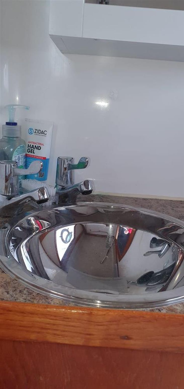 H and C fresh water taps in Galley, Heads and Aft cabin with sinks.