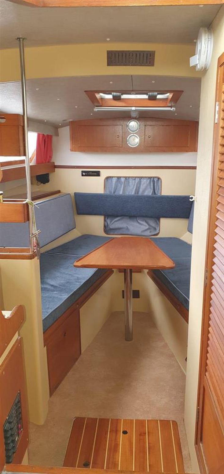 Moreover, the Fairey Fantome is not just about aesthetics and performance; it also offers a range of modern amenities to enhance your boating experience. From advanced navigation systems to plush seating, accommodation which includes berths four in a twin aft cabin and forward saloon which converts to a double. With ample storage, every feature is thoughtfully integrated to ensure convenience and enjoyment. Eberspacher diesel-fired heating with, outlets in saloon and aft cabin.