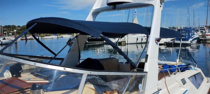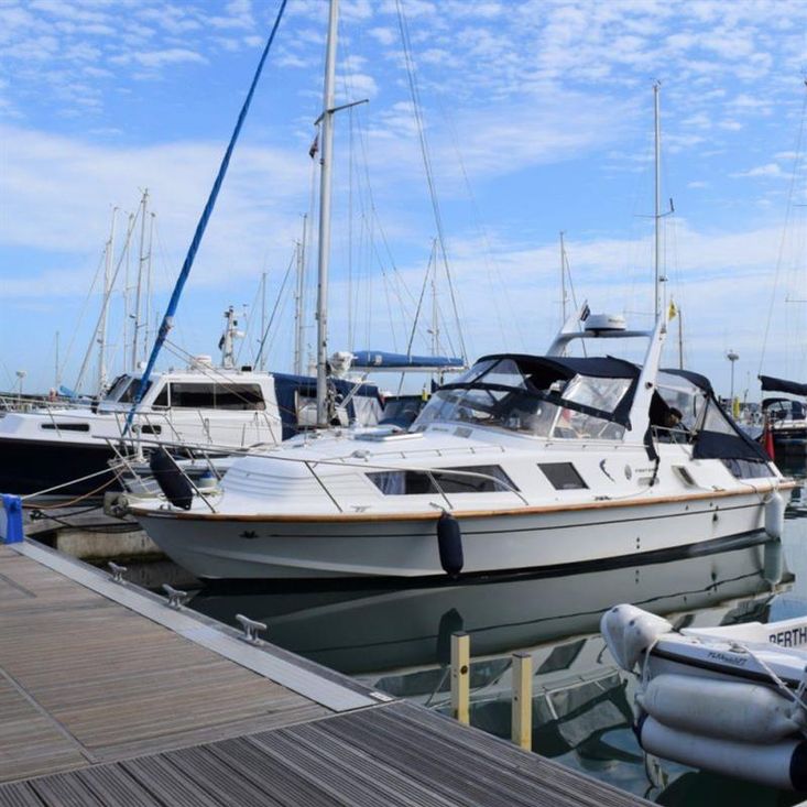 This Fairey Fantome benefits from new upholstery for the forward cabin seating, Seajet 033 eroding antifoul to hull, voltage inverter providing mains powerwhen at sea, modern navigation equipment including chart plotter, radar, AIS VHF. Good quality sprayhood and cockpit cover.