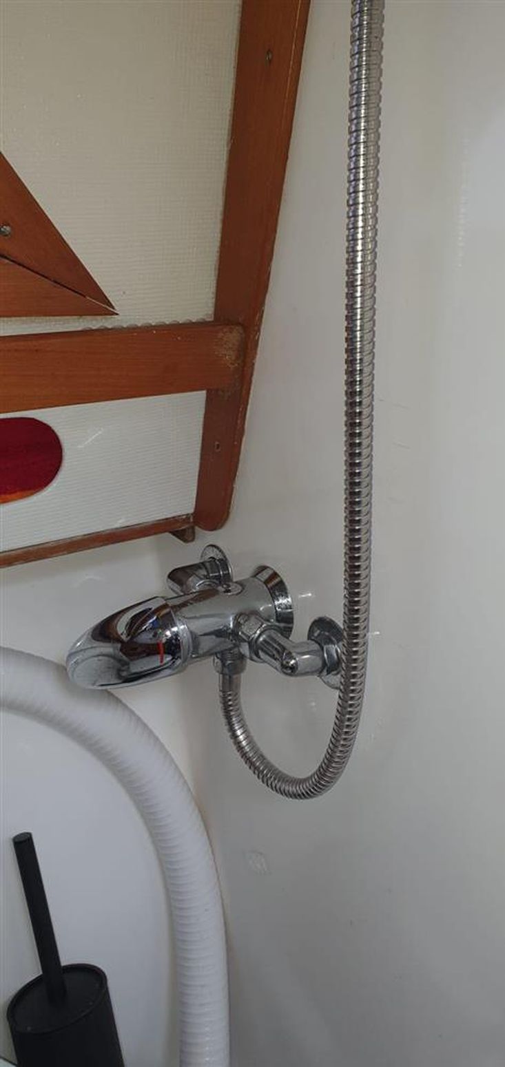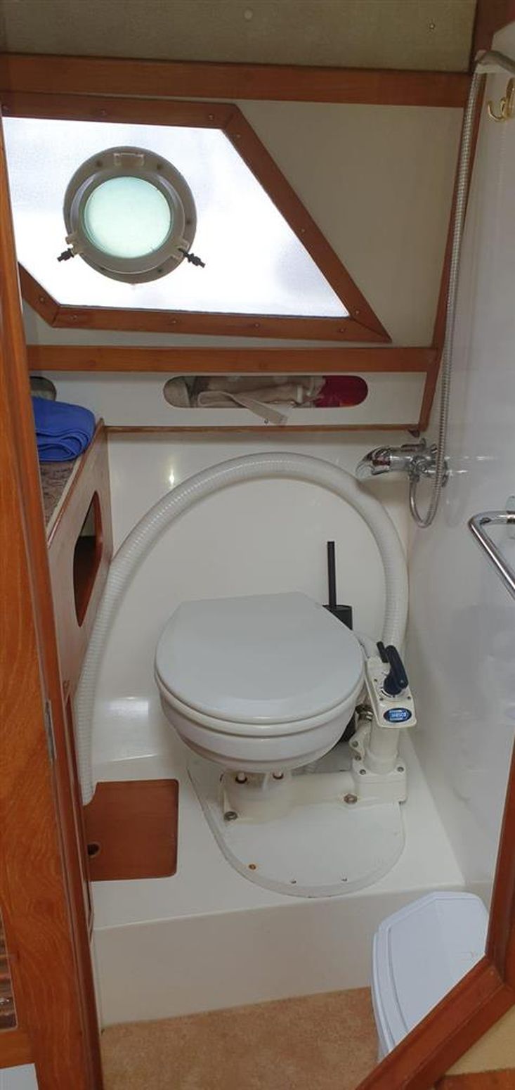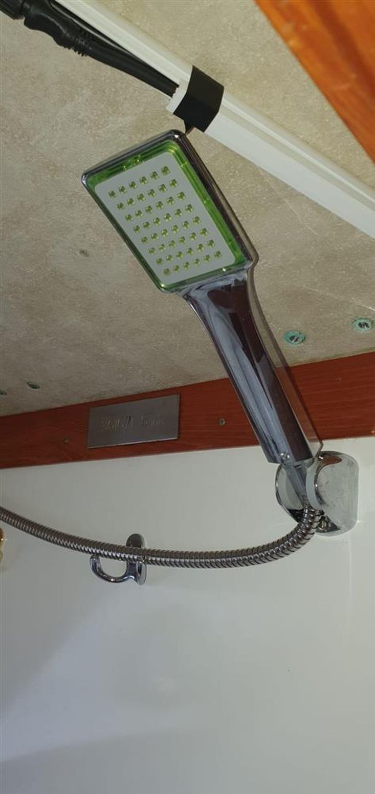 Hot and Cold showers in heads and cockpit (aft starboard behind cushion) for use on aft cabin roof.