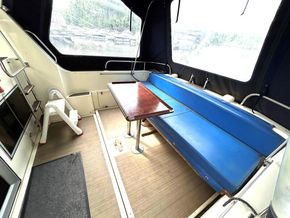 Powered by twin Volvo Penta AQ200D inboard petrol engines on sterndrive, each delivering 200 horsepower, the Fairline promises predictable handling characteristics. The boat features a well-designed layout with two cabins and a convenient head, making it ideal for weekend getaways or extended cruising.