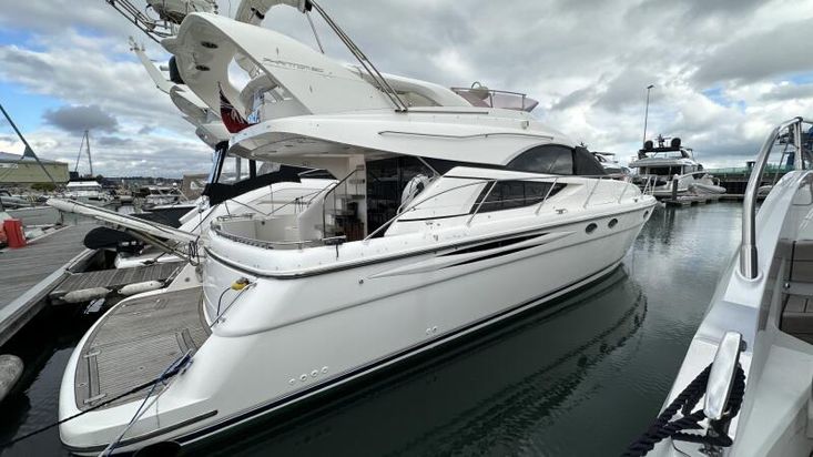 2006 Fairline Phantom 50 fitted with twin Volvo Penta D12-715 diesel engines with just over 530 hours. "Gracie" has a great spec and has clearly been loved; she is in great condition and regularly maintained. Her specification includes reverse cycle air conditioning, generator, passarelle, proportional thrust bow & stern thrusters, updated Raymarine navigation equipment, washing machine etc. She is available to view in Poole by appointment 7 days a week. Please contact Ben Nichols on 07825 747 652 or email ben@clippermarine.co.uk for more information or to arrange a viewing. Competitive rate finance available, contact us for information