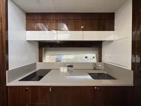 - Starboard side cockpit wet bar with fresh water sink, prep area and large storage beneath