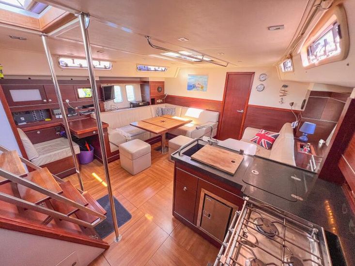 She offers the perfect balance of performance, comfort, and simplicity, with the Hanse Easy Sailing system — self-tacking jib, in-mast furling, and electric winches — making her easily handled by a couple. Below, the interior is bright, modern, and well laid out for extended living aboard, with three generous cabins, two heads with separate stall showers, a long galley, and excellent ventilation throughout.