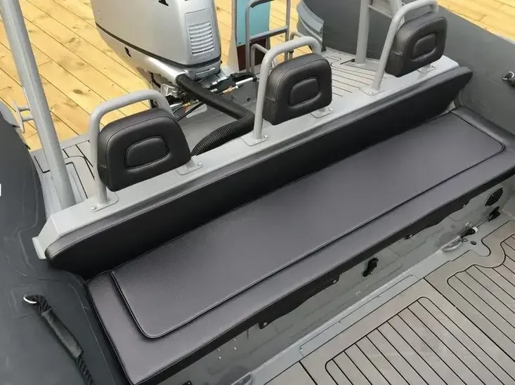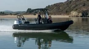 The Patrol is a commercial quality range of RIBs designed and hand-built to withstand the toughest conditions. The hull is constructed from 5mm 5083 aluminium plates with 6 and 10mm stringers. With their super deep V, wide chines, and large diameter tube, they offer high manoeuvrability, safety, and a soft dry ride even in rough conditions. The Patrol boats can carry large loads and plane quickly and easily with minimal horsepower. These boats are ideal for pursuit or work and can be configured with different seating and console options. When safety, toughness, and reliability matter, the Patrol range will be your first choice. Please call us to discuss outboard engines, performance, and electronics if required. Other engine options are available.
