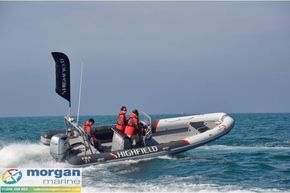 Highfield Patrol 760 aluminium RIB with Honda BF200 DXRU outboard and capacity of 12. The Highfield Patrol range of commercial quality RIBs are designed to work both excellently as a long distance family cruiser or a hardcore work boat. Built to withstand the toughest of conditions. The hull is built from 5083 aluminium plates with 6 and 10mm stringers. With their super deep V, wide chines and large diameter tube, they offer high manoeuvrability, high safety and a soft dry ride even in the roughest conditions. The range offers something for almost every requirement, from Sailing club support to Police and Rescue applications. The Patrol boats carry large loads and plane quickly and easily with little horse-power. For charter boat and commercial operators, the modular set-up option means that we can build a Highfield Patrol 760 with a layout that suits your needs. These boats are ideal pursuit craft or work boats and can be configured with different seating and console options. When safety, toughness & reliability really matter, the Patrol range should be your first port of call. With MCA rating & commercial coding available, the Patrol range is perfect for commercial chartering or working offshore too. Design category C. Black Tubes in Hypalon. NB - library photos may not reflect specification of boat.