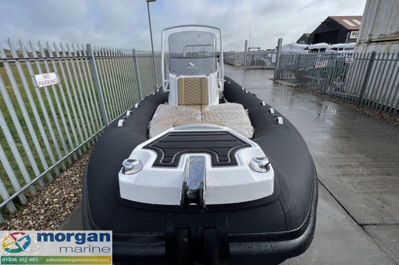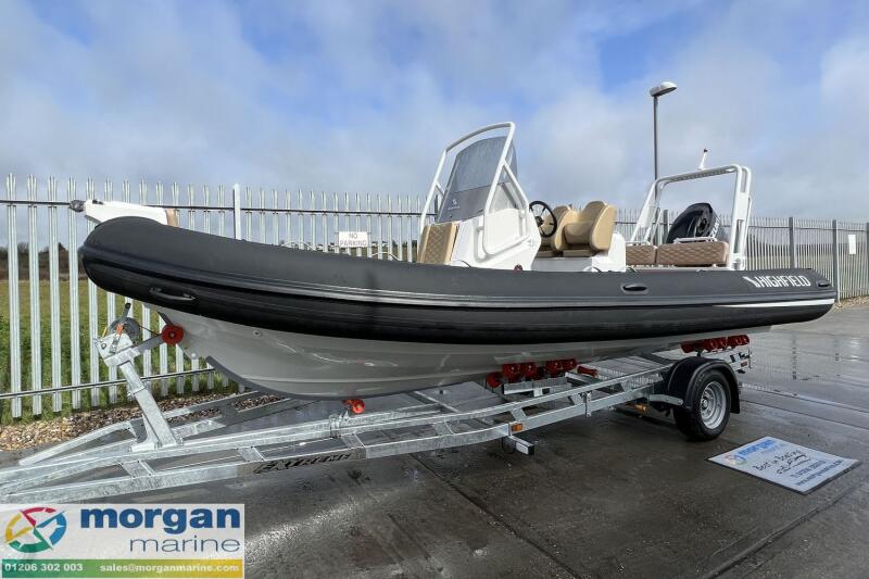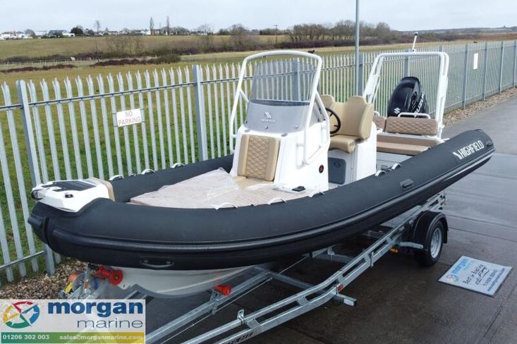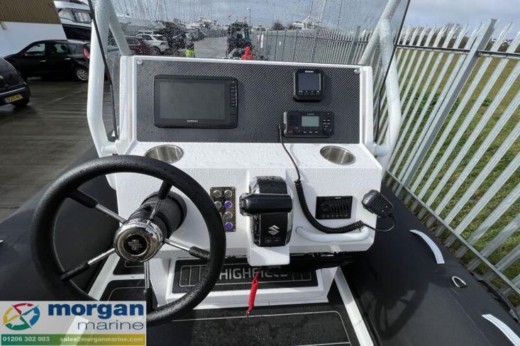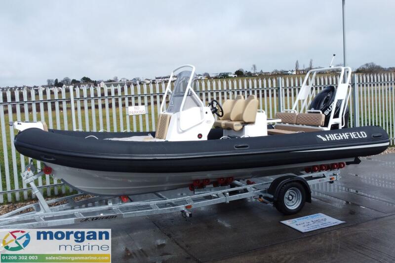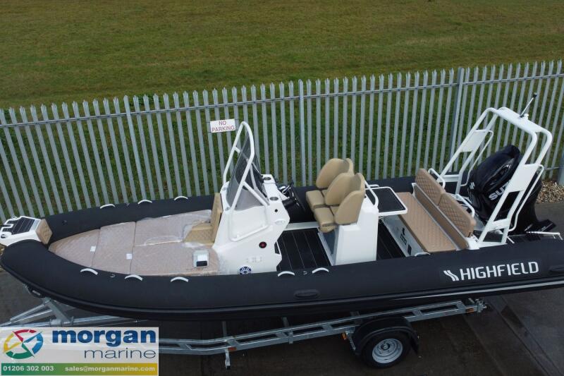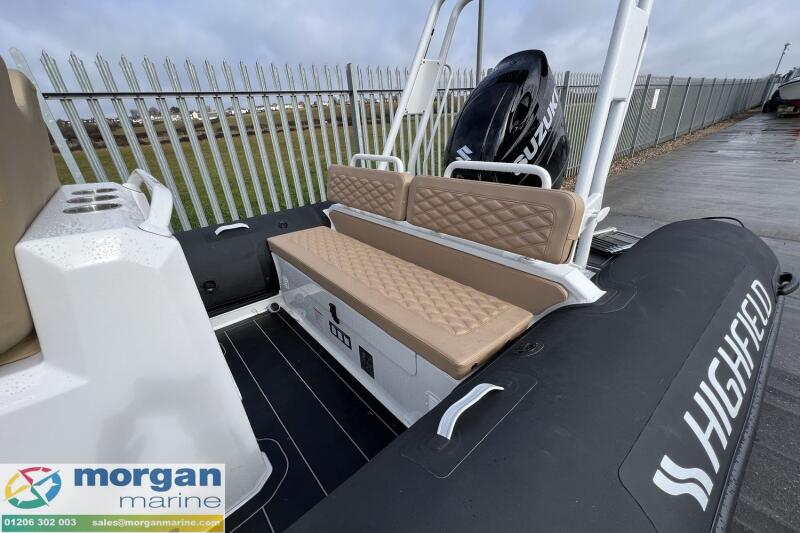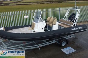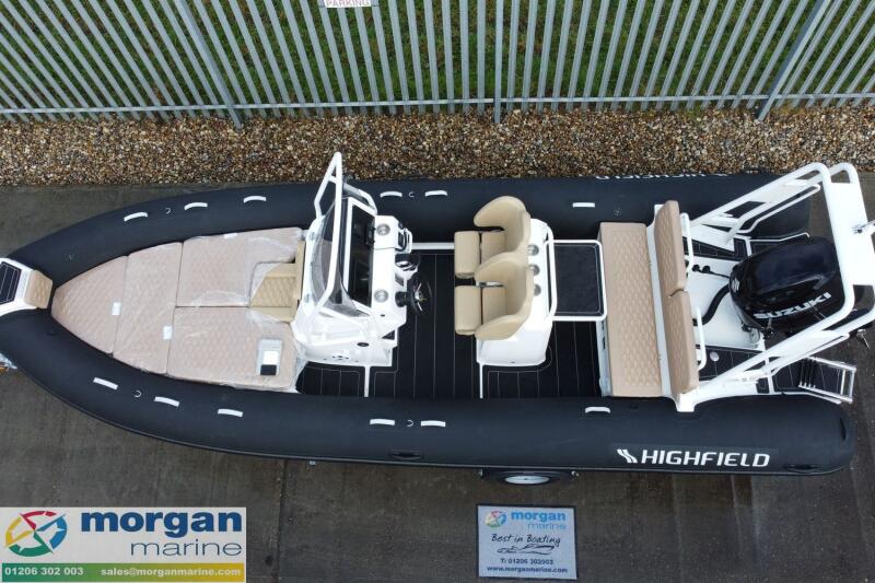 Highfield Sport 660 aluminium RIB with Honda BF150 outboard offering thrilling performance of 42 knots and boat capacity of 13 people. Nothing has been sacrificed in the design of this boat. Top quality materials are the hallmark of what Highfield do. A hull deadrise angle of 26 degrees on the Highfield Sport 660 will give you assurance in the toughest conditions. A superb RIB which will withstand the toughest conditions and decades of use. The Aluminium hull offers many advantages from no worries of delamination, no gel coat chips and being stronger and lighter than its GRP competition. This boat comes fully equipped ready to hit the water with Garmin Echomap UHD2 95 chartplotter, Garmin VHF 115i, Fusion audio system with speakers, Honda digital engine display. Sun deck, tow post, Twin jockey seats are also included in this fantastic boat. Design category C. Black tubes in Hypalon. NB - library photos may not reflect specification of boat.