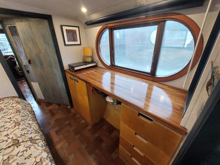 This spacious, elegant boat has been loved by many previous owners, including us, each whom have brought their own style and care to the space. Previous to us were interior designers who took their time with beautiful recycled woodwork detailing, copper inspired decorations, and stylish touches. We have focused on upgrading all essential systems to be top spec - including the solar and electrics system (Victron) which we use to both work from home with no issues at all, our engine has been maintained to a high specification, refurbishment of starter motor, entirely new gas system completed by a highly rated Gas Safe Engineer, a recently new compost toilet from Simploo, and refurbished woodwork within the wooden wheelhouse. We are proud of the work we have invested in, and have confidence that our time on this boat has been positive for her longevity and health.