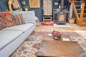 The lounge is warm and welcoming, featuring a multi-fuel stove that provides efficient heating throughout the year, complemented by bespoke radiators in the living area and bathroom.