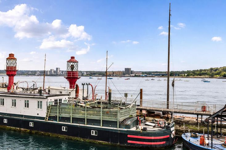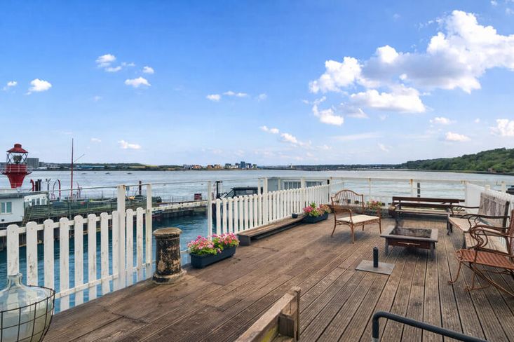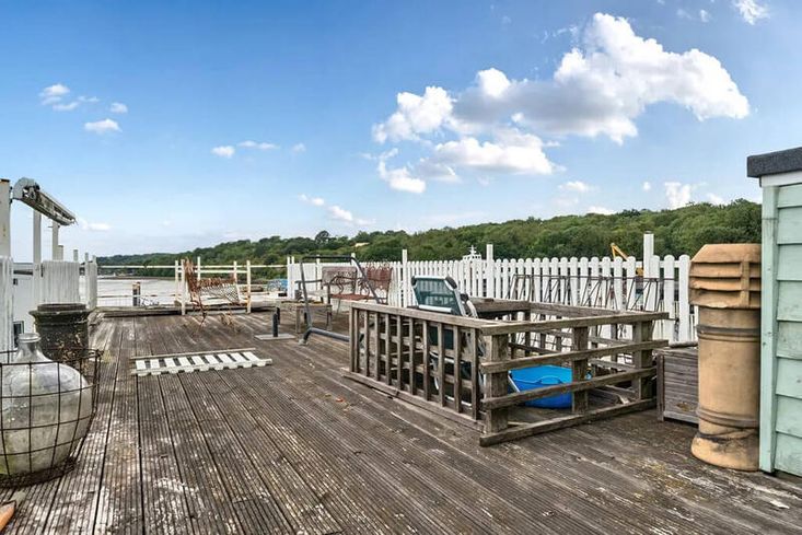 A stairwell from the entrance area leads up to a truly impressive roof terrace, extending the full length and width of the vessel. Fully decked and enclosed with picket fencing, this exceptional outdoor space is ideal for relaxing, entertaining, and enjoying commanding views over the River Medway.