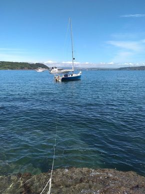 2 berths in cabin with cushions, cockpit table & swimming ladder for cruising. Velocitek Speedpuck GPS speedometer/compass. Silva classic racing compass on mast. Comes with 7kg plough anchor, swimming ladder, mooring lines, boathook, 7m of 8mm chain & 43m of warp in bag (rinsed and stored dry). Throwing line & horseshoe buoy.