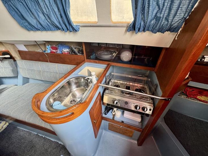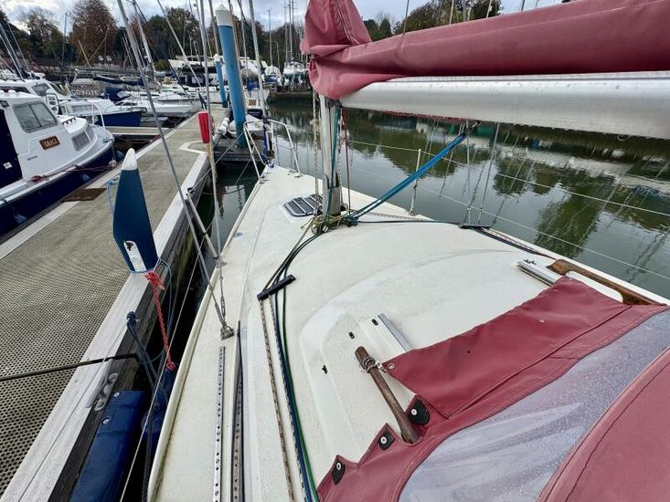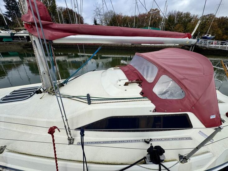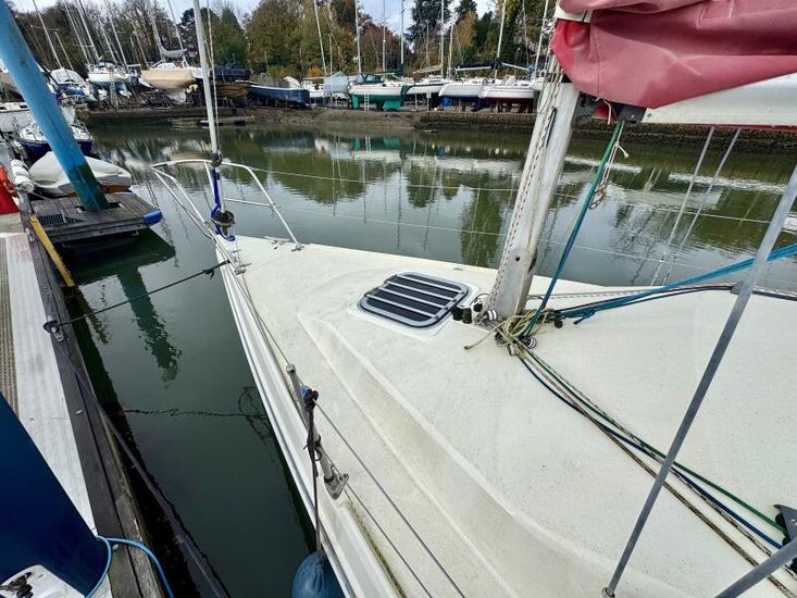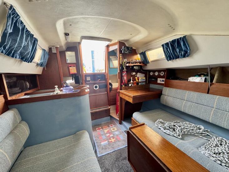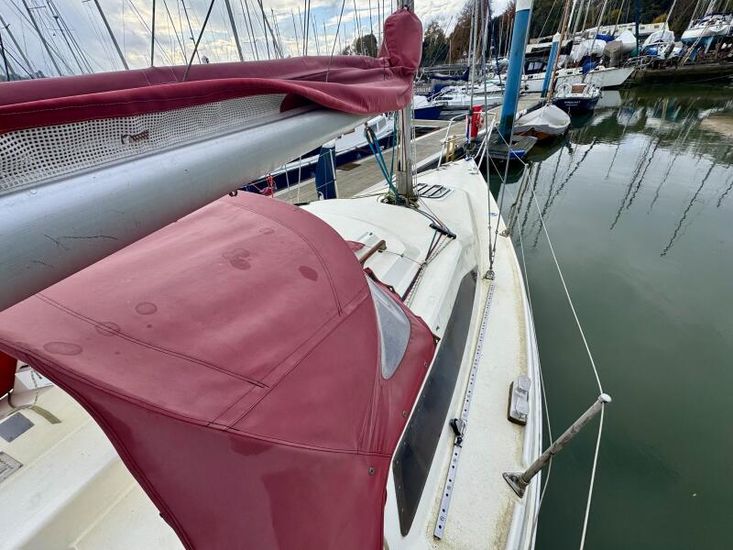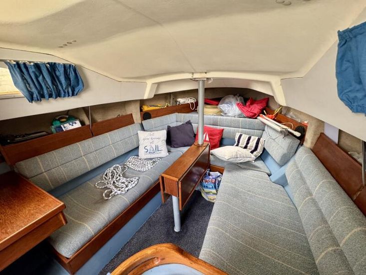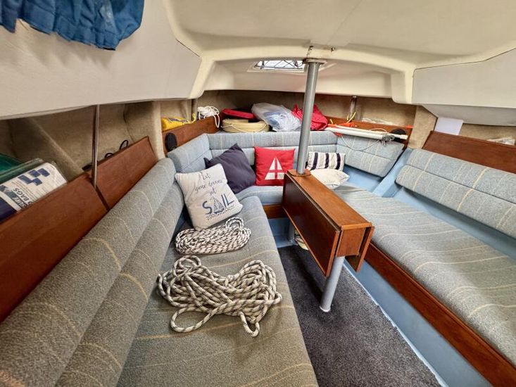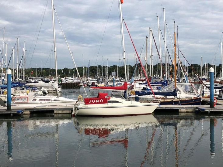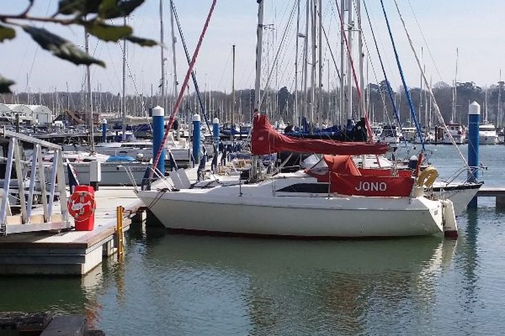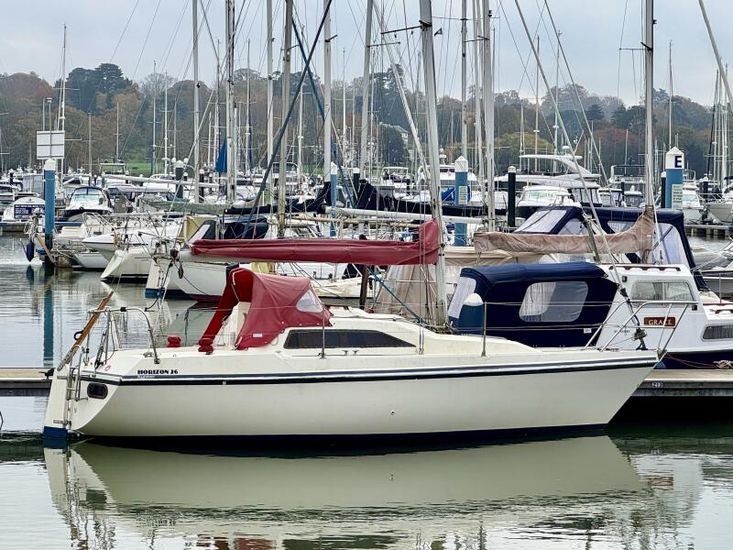 Introducing JONO - a great example of the well-regarded British cruiser, the Hunter Horizon 26.  Combining solid performance, practical design, and comfortable accommodation in a compact and easily managed package.  Jono is a 1988 example, powered by the reliable Yanmar 1GM10 diesel engine, offering dependable propulsion and economical running.  Designed by David Thomas, the Horizon 26 has earned a strong reputation for her balanced sailing characteristics, sturdy build, and surprisingly spacious interior.  With her twin-keel configuration (ideal for exploring shallower waters and drying moorings) and efficient sail plan, she’s equally at home coastal cruising or enjoying weekend sailing adventures.  Below deck, the layout is bright and functional, a practical galley, enclosed heads compartment, separate rear cabin and a comfortable saloon for her size. On deck, all control lines are led aft for ease of handling, making her an excellent choice for short-handed sailing.