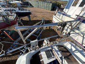 This Hunter Pilot 27 has a Bermudan sloop rig with a Z-Spar aluminium Masthead mast and boom. It has a tabernacle base with mast-lowering rigging. It has stainless steel standing rigging that was replaced in 2013 and terelyne running rigging that has been replaced as required. It has an Easyreef behind the mast furling mainsail and self-tacking Plastimo furling headsail system. All lines are led aft to the cockpit.