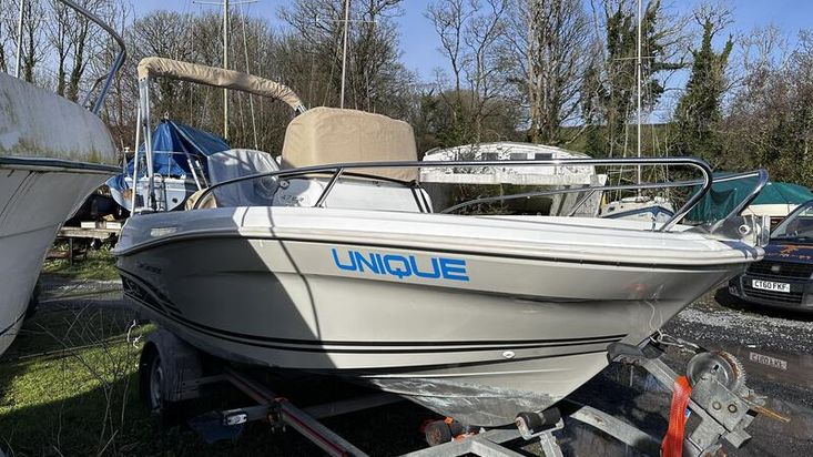 GRP Hull. Mooring cleats. Bow roller. Anchor, chain and rope. Full overall cover. Bimini with canopy and frame. Non-slip flooring. Stainless steel pulpit. Folding swim ladder. Plastimo Offshore Compass fitted 2026.
