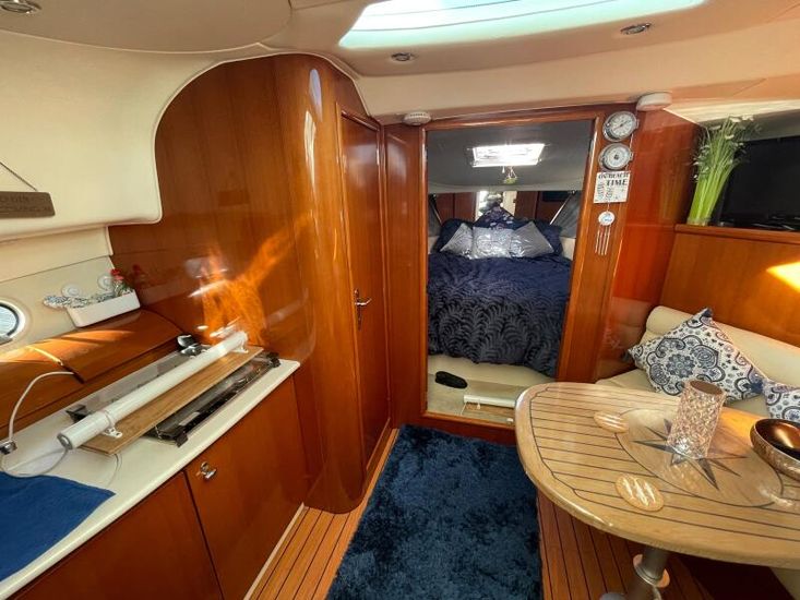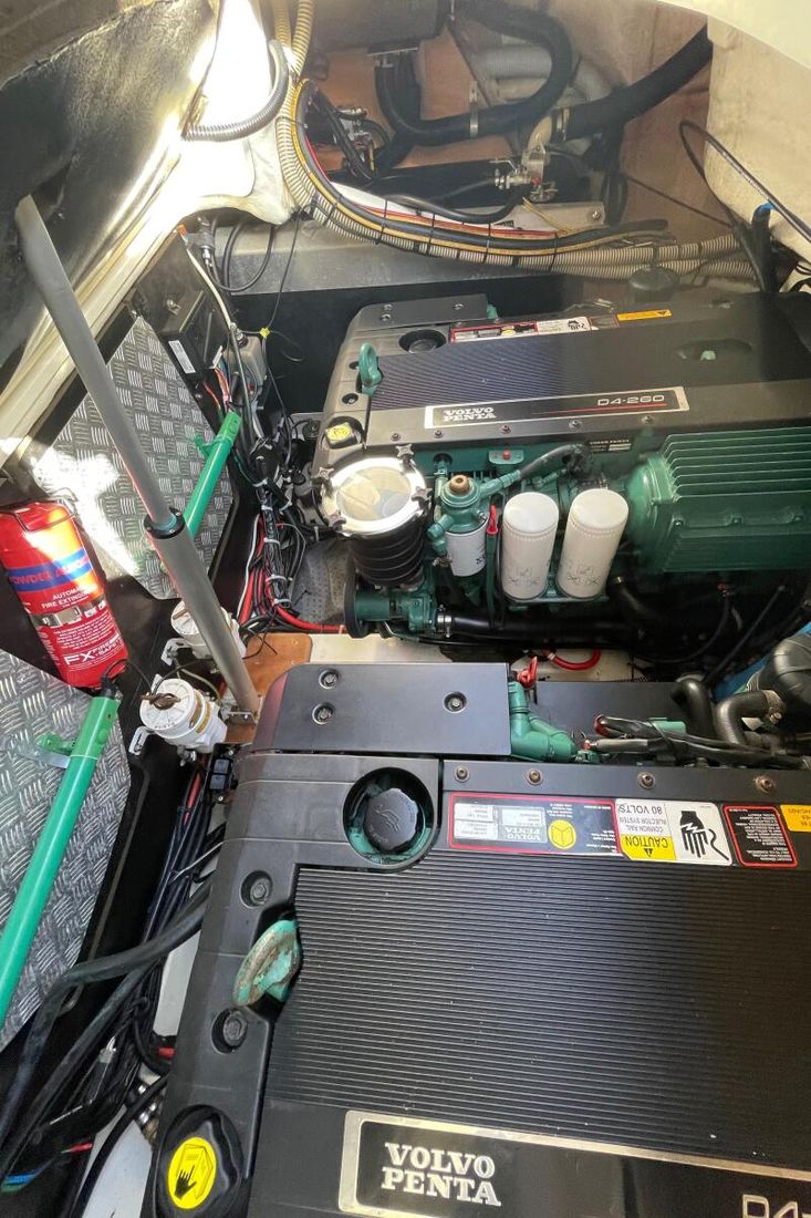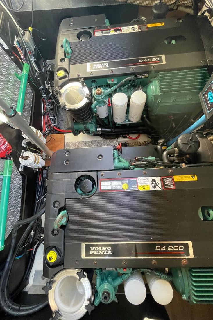 Powered by a pair of 260hp Volvo D4 inboards on stern drives she gets on the plane quickly and easily and will be flat out at a whopping 36 knots allowing you to move quickly between locations and giving an exhilarating and enjoyable ride.