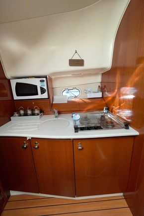 Galley to Port (Large cupbaords, Microwave, 3 Burner Gas hob, Sink with hot and cold water)
