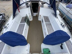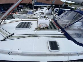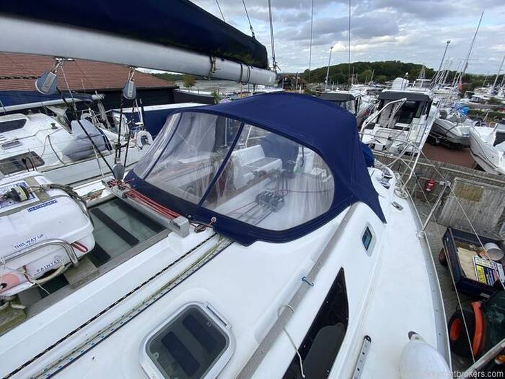JEANNEAU SUN ODYSSEY 40 with GRP hull, deck & superstructure, fin keel, Yanmar 55HP shaft driven diesel engine, sails include main, Genoa (2022), slab reefing, accommodation includes 3 x double berths in 3 cabins excluding saloon, separate w.c. compartment with sea w.c. and shower, hot water, warm air heating, equipment includes anchor windlass electric, Raymarine instruments including radar see under "Inventory", self-tailing winches, slab reefing from cockpit, shore power, outboard davit, 2 x electric bilge pumps, life raft (2020), Radar reflector, new engine mounts (2021) etc.