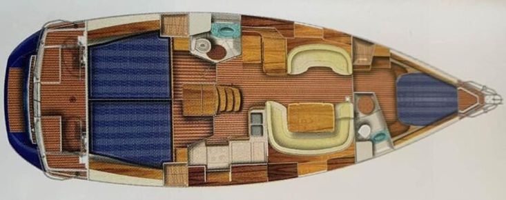 Flag: UK. Berths: 8. Cabins: 3 Double. Fuel Tank (lt): 250 lt (1 x Plastic Tank). Water Tank (lt): 450 lt (2 x Plastic Tanks). Engine (hp)/ Hours: Yanmar 4JH4TE 75hp turbo, 2.300hrs (September 2025). Dinghy: Arimar inflatable. Outboard: Mercury / Mariner 3.3 hp 2-stroke.