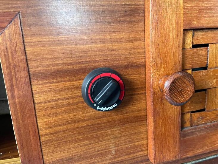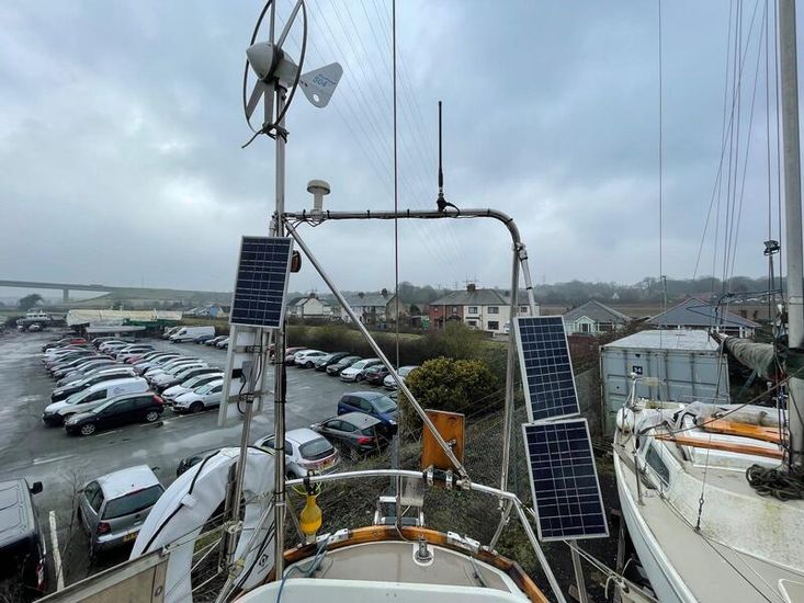 All navigation and main cabin lights benefit from low powered LED lights. Beside the solar/wind chargers she has a Nobo 10-Watt mains charger. Shore power via RCD, with 2 sets of sockets one with USB sockets. 12 volt switching panel with LED indicator, circuit breaker, and switch per circuit. Nasa BM1 (battery monitor) on main battery and voltmeter on starting battery.