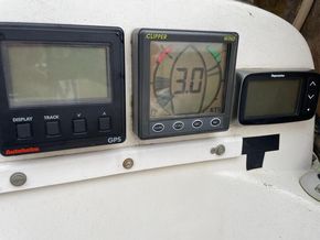 Plastimo steering compass, Raymarine i40 bi-data speed and depth, Autohelm GPS repeater, Nasa Clipper wind repeater, Standard Horizon GX1700E VHF radio with cockpit remote station microphone, Nasa Meteoman barometer with masthead anemometer, Vesper XB-8000 AIS transponder with WIFI, Raymarine ST1000 autopilot, Sony DAB/FM/MW/LW radio.