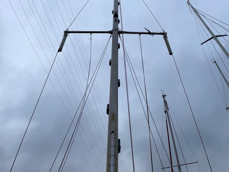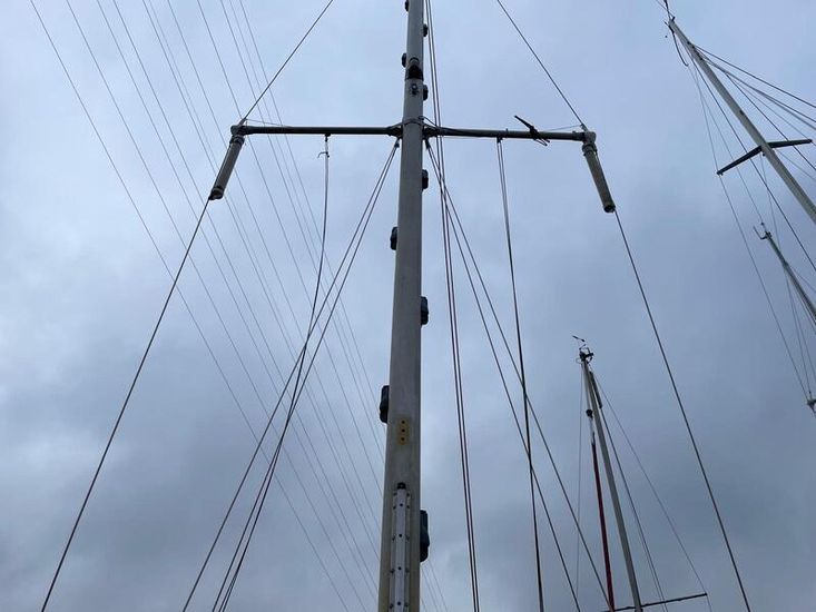 Mast head sloop with anodised mast and boom. The mast has a full set of steps. Furlex 104S head sail reefing system fitted 2021 and slab reefing to main sail with 3 reefs. Standing and running rigging replaced in the last 5 years. Chain plates replaced 2009. Winches comprise of 2 x Lewmar self-tailing sheet winches, 2 X spinnaker winches, 1 X Lewmar Halyard winches, and 2 X Barlow winches fitted to mast. Main sail, Genoa, spinnaker all in reasonable condition.