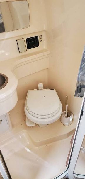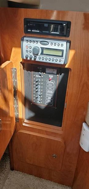 It has a galley complete with a microwave, single-burner stove, refrigerator, and a B&D coffee maker. It has an enclosed head and a convertible V-berth.