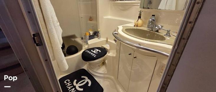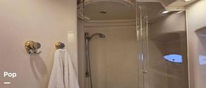 Master State Room has a walk-around bed, flat screen TV, Private head complete with separate shower and BATH TUB. The second Master has a king-size bed or can be converted to two twins and seating. The mid cabin bath is complete with a round Shower.